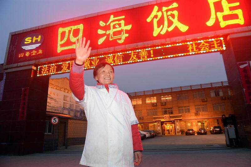 余本銀飯店的顧客大多是來自江蘇、上海、浙江、新疆等地南來北往的過路客,她從來都是真誠地替客人著想,把客人當做自己的親人一樣對待。她總是建議顧客點菜要按照人數(shù)所需,不能多點菜,以免造成浪費!叭绻撬膫人吃飯的話,一般我會建議點三四個菜,能吃飽吃好,費用在100元左右!庇啾俱y說。