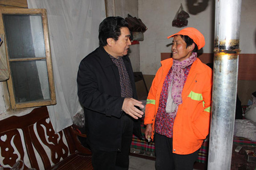 河南街小區(qū)保潔員王菊芹,家中子女常年在外與家里少有聯(lián)系,老伴又年老多病無(wú)法務(wù)工,還要撫養(yǎng)外孫上學(xué),僅憑她做保潔的收入在河南街村租住了一間不及12平米的小屋作為三人的居所。趙明海首先感謝了她對(duì)公司默默作出的貢獻(xiàn),鼓勵(lì)她說(shuō):“困難都是暫時(shí)的,要相信在城投集團(tuán)的正確領(lǐng)導(dǎo)下,我們物業(yè)公司會(huì)越來(lái)越好,只要努力工作,公司會(huì)想方設(shè)法為職工解決困難。”同時(shí)要求工會(huì)和團(tuán)支部要積極與上級(jí)溝通,取得支持,切實(shí)為困難職工辦實(shí)事,辦好事。王菊芹對(duì)公司領(lǐng)導(dǎo)在春節(jié)前夕前來(lái)看望慰問(wèn),激動(dòng)地緊緊握住公司領(lǐng)導(dǎo)的手連聲表示感謝。