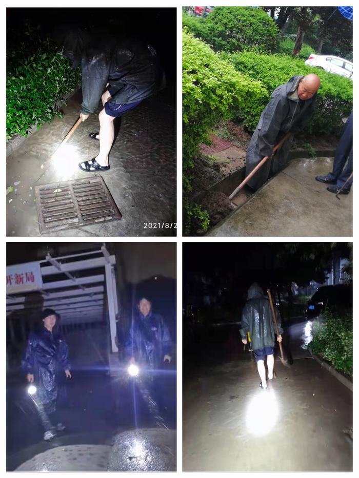 暴雨來襲,傾盆的大雨沒有影響物業(yè)人的堅守,他們在小區(qū)的每條道路上不間斷來回巡查,排查道路積水情況和下水口的疏通情況。他們疏通下水口,或一遍遍重復著掃雨,雨不停,他們不停。雨水短暫的停歇后又是一場暴雨,他們身上被淋濕的衣物還未干,卻又義無反顧奔波在小區(qū)的每條路上,為行人車輛出行保駕護航。