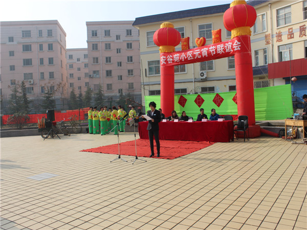 (信息員:董麗娜)2月22日,正月十三,城投物業(yè)安谷苑小區(qū)物業(yè)中心在小區(qū)中心廣場舉辦了元宵節(jié)聯(lián)誼會。咸戶北路社區(qū)主任梁波,陳陽辦事處主任劉英,小區(qū)項(xiàng)目部領(lǐng)導(dǎo)趙培生,小區(qū)業(yè)主代表?xiàng)钪静、董超龍以及物業(yè)公司副總魏述剛和各部門負(fù)責(zé)人出席了本次活動。