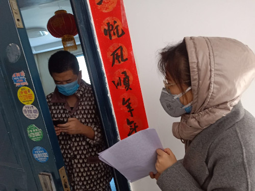 志愿者配合小區(qū)物業(yè)上門完成業(yè)主信息填報(bào)工作