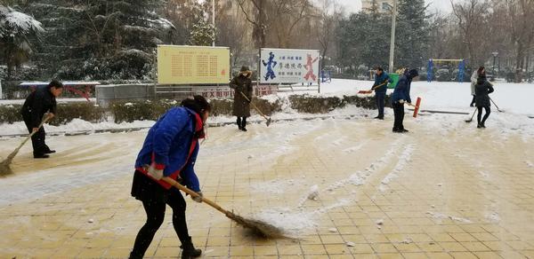 由于氣溫較低,主干道路的雪被壓得很瓷實,清掃工作十分困難。天氣雖然寒冷,但是大家熱情高漲,即使手凍的通紅,也擋不住大家的干勁。都爭先恐后,團結(jié)協(xié)作、井然有序,掃的掃、鏟的鏟,干勁十足,一心想著將路面的積雪盡快清除,經(jīng)過一天的奮戰(zhàn),基本將包抓路段、主干道積雪清掃干凈,確保了廣大居民、業(yè)主的出行安全。